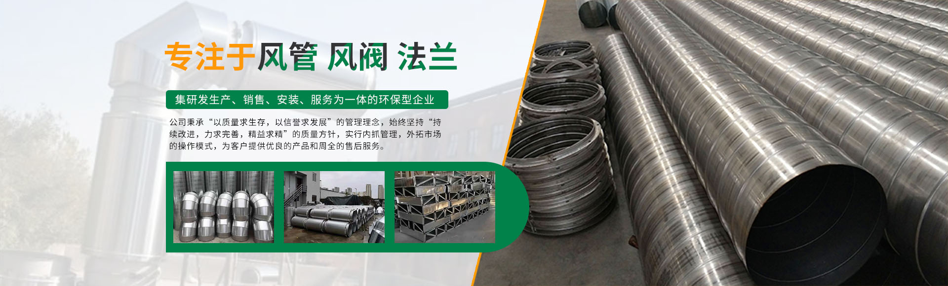 • 我廠是一家以風(fēng)管、風(fēng)閥、法蘭為中心,集研發(fā)生產(chǎn)、銷售、安裝、服務(wù)為一體的環(huán)保型企業(yè)。
